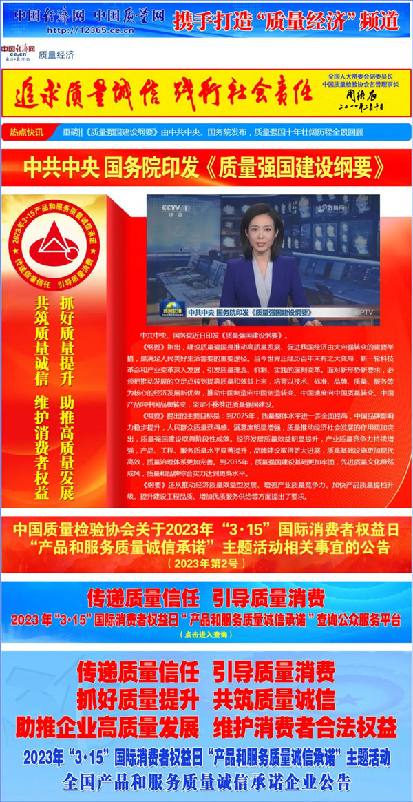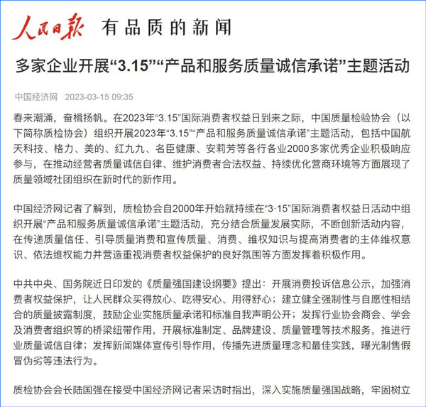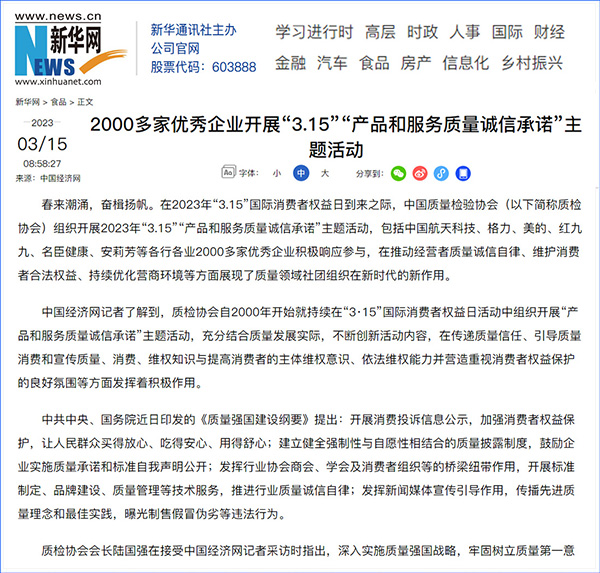 中國經(jīng)濟(jì)網(wǎng):2000多家優(yōu)秀企業(yè)開展“3·15”“產(chǎn)品和服務(wù)質(zhì)量誠信承諾”主題活動(dòng)