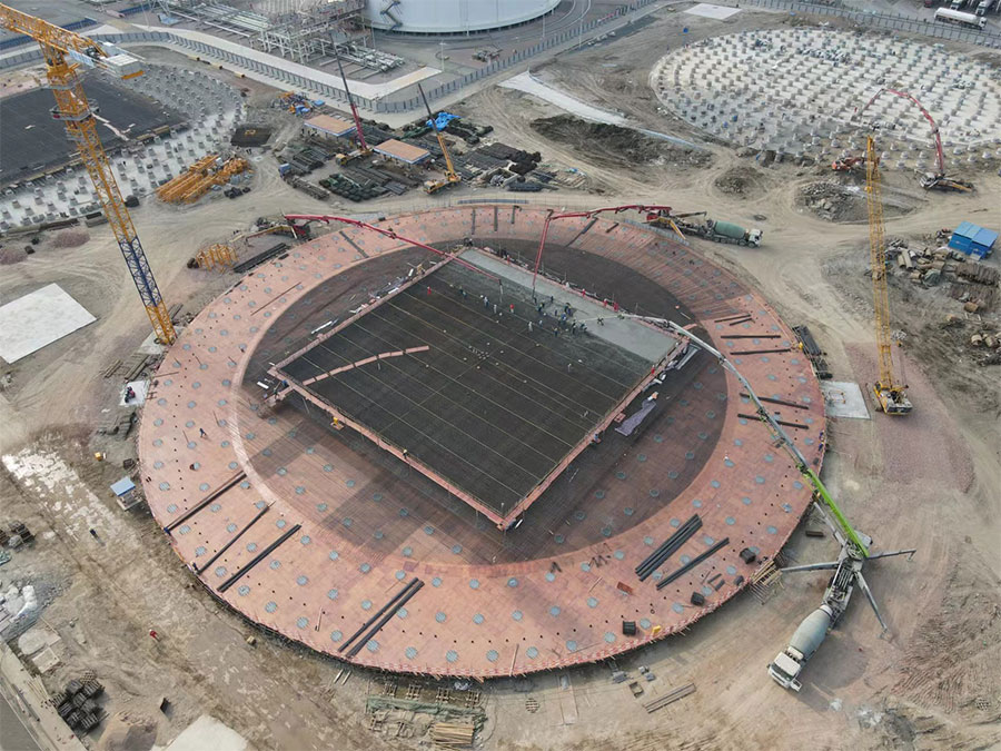 珠海LNG二期項目EPC總承包項目組全體員工堅持“一個項目,一個團隊,一個策略,再創(chuàng)豐碑”的建設理念,以建設世界最大罐容LNG儲罐為榮,以高度負責的主人翁姿態(tài)參與到項目建設中。