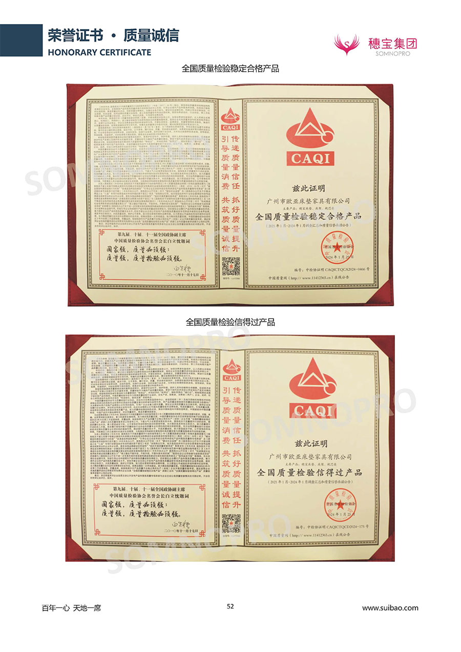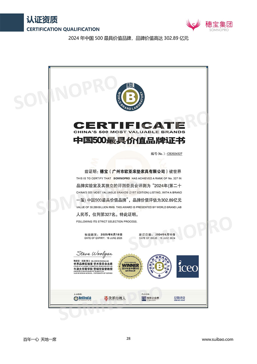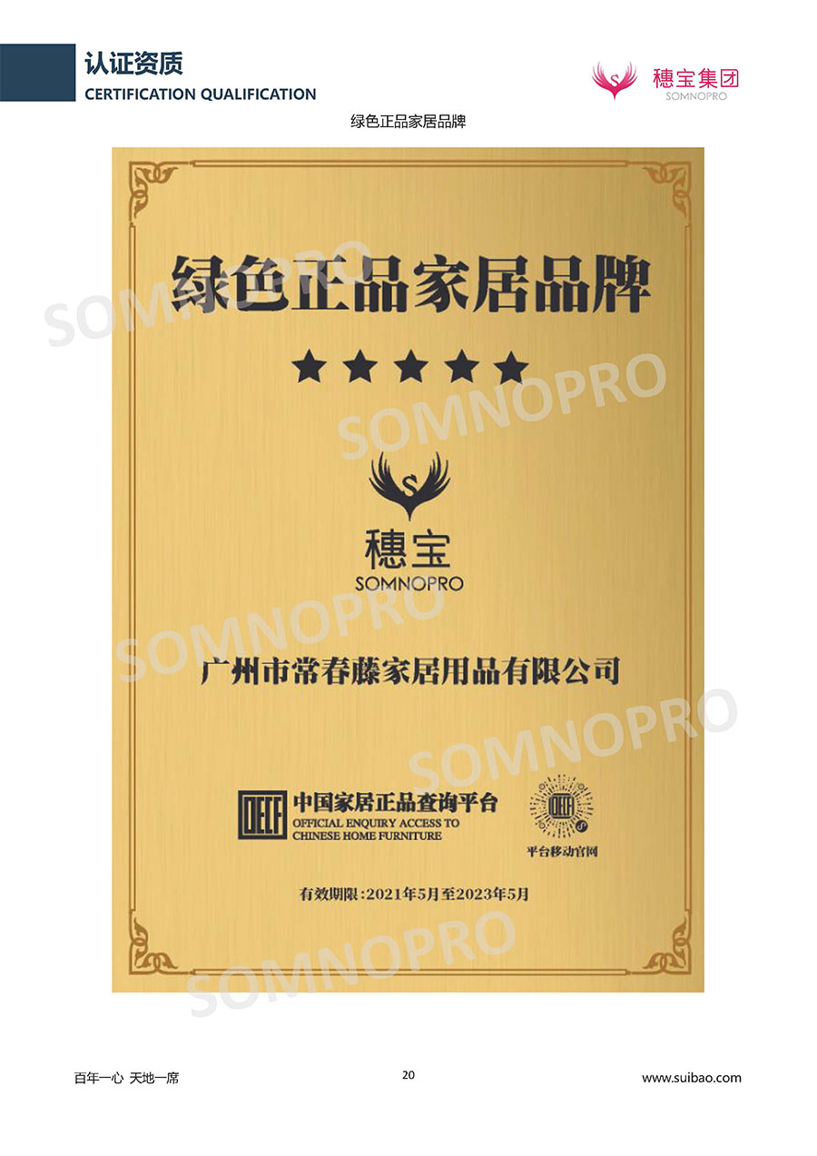 自1971年獨立研發(fā)生產(chǎn)出專屬國人的彈簧床墊,穗寶關于優(yōu)質深度睡眠的研究已有半個世紀的歷史。穗寶一直專注床墊,專注中國消費者的睡眠研究,針對中國人特點進行優(yōu)化創(chuàng)新,不斷提升國人的睡眠體驗,只為成就每個晚上8小時的優(yōu)質深度睡眠。憑借不斷革新的研發(fā)科技和深受消費者信賴的產(chǎn)品品質,穗寶集團旗下品牌和產(chǎn)品屢獲國內(nèi)外大獎,連續(xù)20年榮膺中國500最具價值品牌,品牌價值高達302.89億元。
