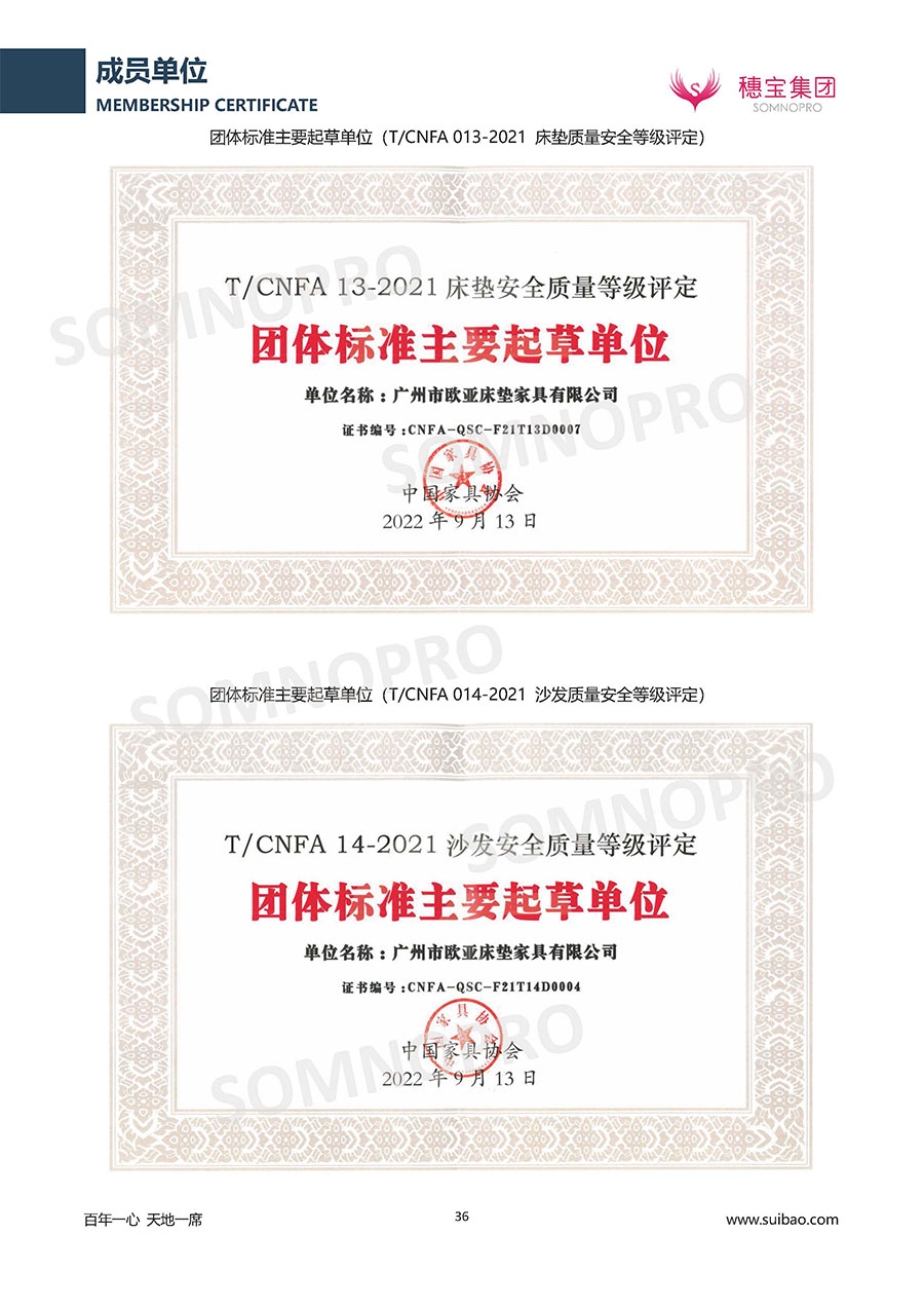本著高品質、高效率、重管理的原則,穗寶已通過ISO9001質量管理體系認證證書、ISO14001環(huán)境管理體系認證證書、ISO45001職業(yè)健康安全管理體系認證證書、中國環(huán)境標志產(chǎn)品認證證書、家居綠色環(huán)保領跑品牌、綠色正品家居品牌、企業(yè)標準“綠色領跑者”證書、CMS測量管理體系證書、CMS測量管理體系證書附件、廣東省“守信用重合同”企業(yè)、廣州歐亞-納稅信用A級納稅人(連續(xù)5年:2018-2022)、2024年中國500最具價值品牌,品牌價值高達302.89億元、廣東高價值商標品牌(穗寶)、廣東省重點商標保護名錄納入證明、廣州市勞動關系和諧企業(yè)AA級。穗寶自創(chuàng)立以來,不斷致力于新產(chǎn)品的設計與研發(fā),多次在國內(nèi)家具展會屢獲獎項,產(chǎn)品暢銷國內(nèi)外,深受客戶一致好評。