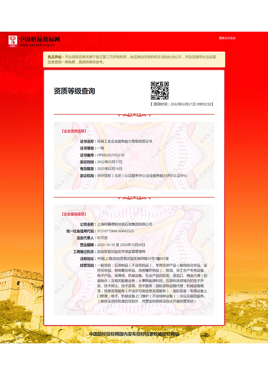 上海柯賽德斯加美石油集團有限公司