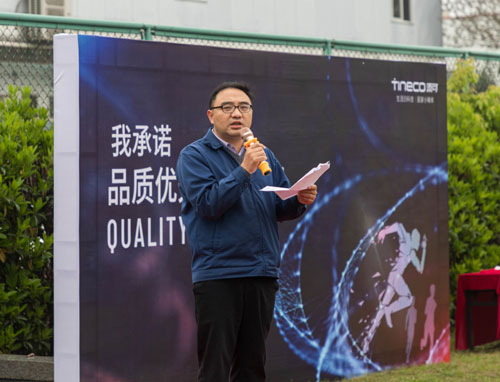 制造中心總監(jiān)劉焱南總發(fā)表演講,他強(qiáng)調(diào),品質(zhì)優(yōu)先是從我們每一個人做起,從我們的思想意識中就認(rèn)識到品質(zhì)的高度重要性,我們要遵守工藝紀(jì)律,嚴(yán)格按照我們標(biāo)準(zhǔn)作業(yè)指導(dǎo)書來進(jìn)行,每一個步驟嚴(yán)格遵守,使得我們做出來的產(chǎn)品,都是合格品。
