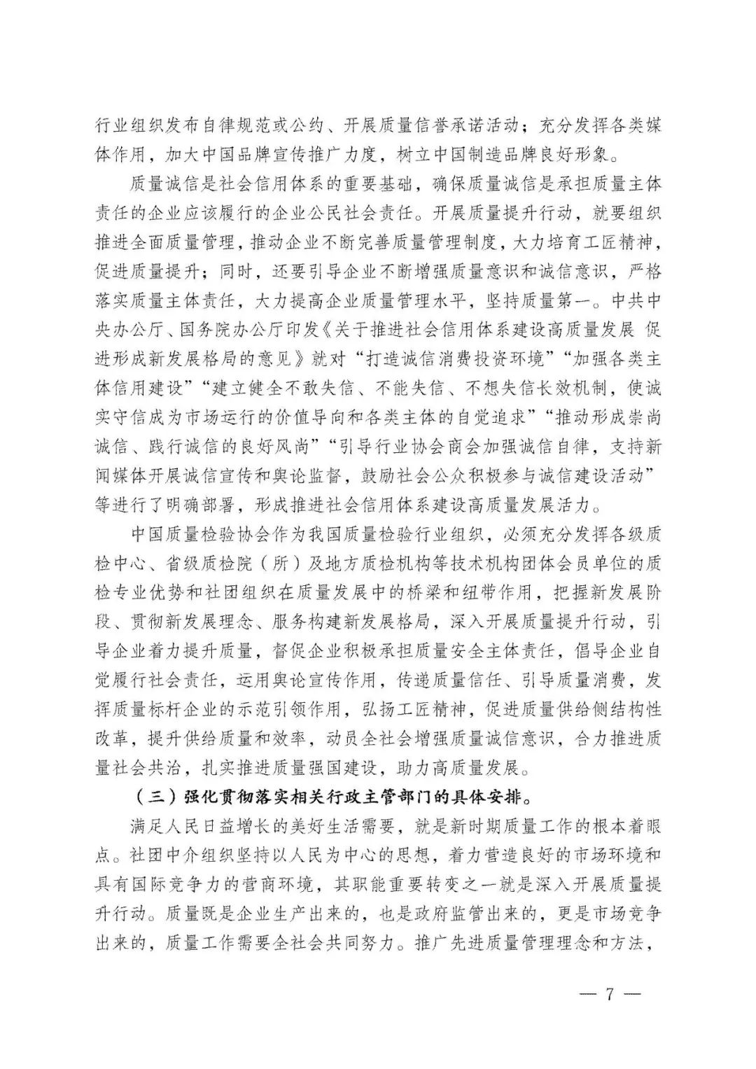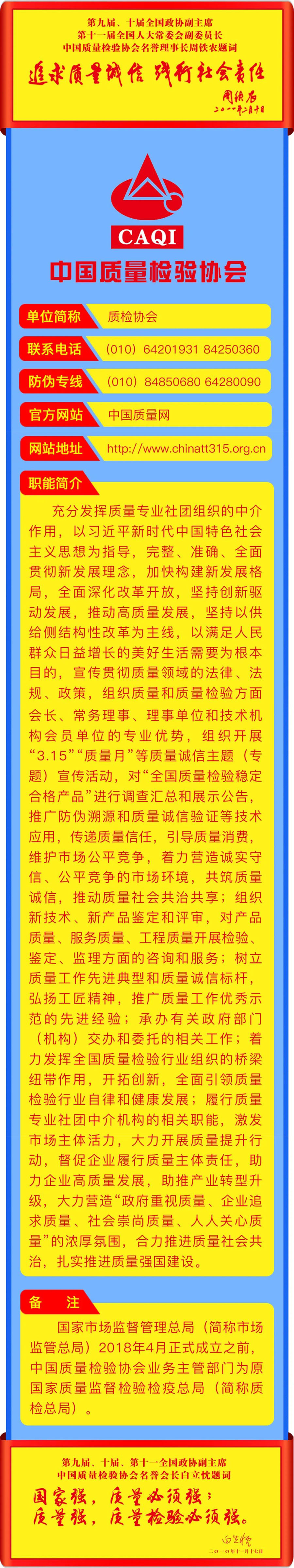 李克強(qiáng)總理批示指出,打造集質(zhì)量、標(biāo)準(zhǔn)、技術(shù)、品牌等于一體的高品質(zhì)產(chǎn)品和服務(wù),在市場競爭中鍛就中國質(zhì)量、培育中國精品。倡導(dǎo)企業(yè)對產(chǎn)品和服務(wù)質(zhì)量作出誠信倡議,也是中國質(zhì)量檢驗(yàn)協(xié)會(huì)自2004年以來組織開展全國“質(zhì)量月”企業(yè)質(zhì)量誠信倡議專題活動(dòng)的要義。謹(jǐn)期社會(huì)各界共同努力,推進(jìn)質(zhì)量社會(huì)共治,抓好產(chǎn)品和服務(wù)的高品質(zhì)質(zhì)量提升,共同為我們的質(zhì)量強(qiáng)國事業(yè)去奮斗!