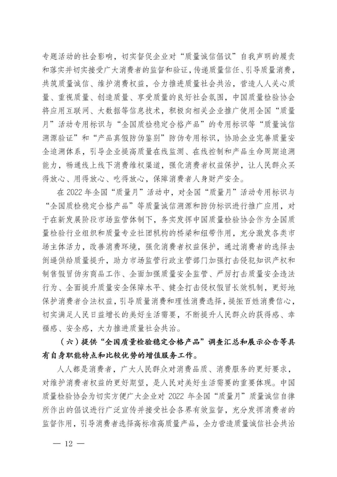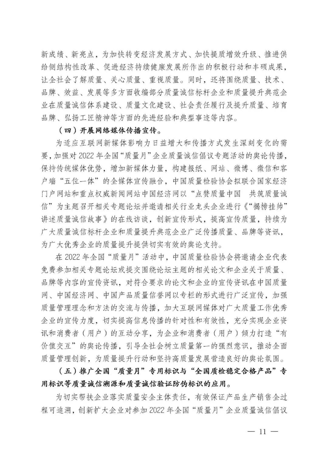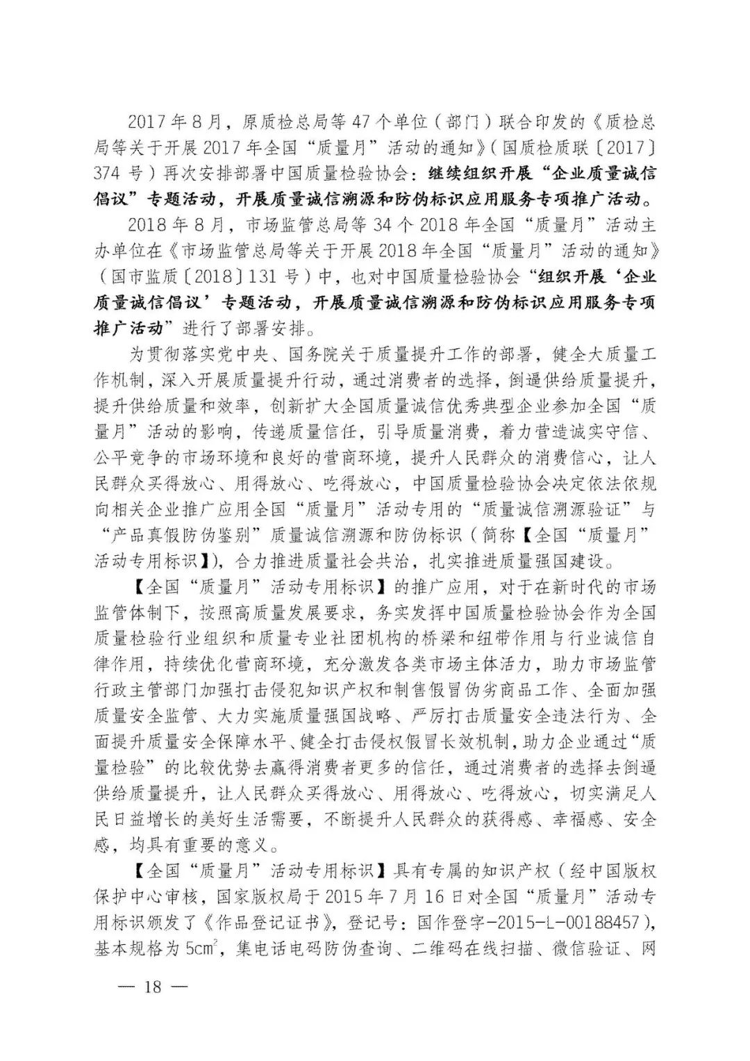持續(xù)堅(jiān)守,久久為功。45年來,全國“質(zhì)量月”活動(dòng)參與者上億人次,中國質(zhì)量工作也歷經(jīng)了“質(zhì)量振興”“質(zhì)量發(fā)展”及至當(dāng)下“質(zhì)量強(qiáng)國”的非凡歷程。中國質(zhì)量檢驗(yàn)協(xié)會(huì)作為始于1996年就參與全國“質(zhì)量月”的親歷者,我們必將繼續(xù)努力舉辦好全國“質(zhì)量月”企業(yè)質(zhì)量誠信倡議專題活動(dòng),為助力擴(kuò)大全國“質(zhì)量月”活動(dòng)在廣大企業(yè)中的影響力作出不可或缺的積極努力。