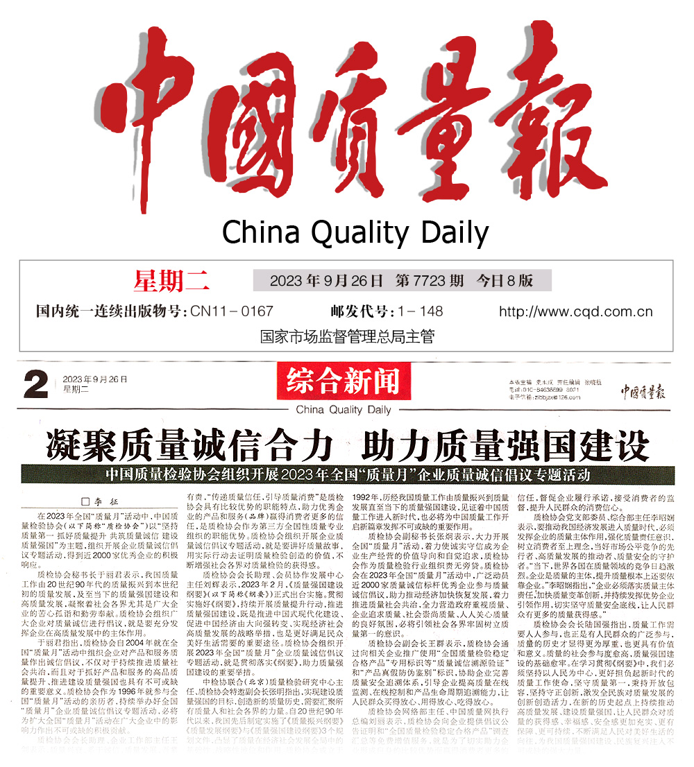 ——中國質(zhì)量檢驗(yàn)協(xié)會(huì)組織開展2023年全國“質(zhì)量月”企業(yè)質(zhì)量誠信