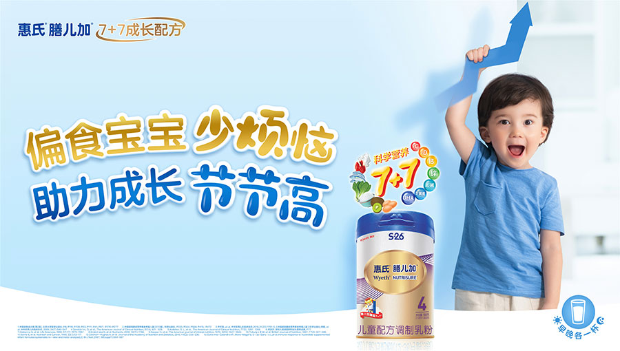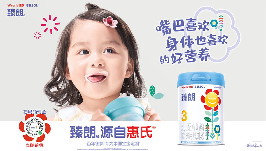在中國(guó)市場(chǎng),惠氏營(yíng)養(yǎng)品有多款產(chǎn)品滿(mǎn)足消費(fèi)者的不同需求,包括愛(ài)爾蘭原裝進(jìn)口的啟韻tm和啟賦®系列,瑞士生產(chǎn)并進(jìn)口的惠氏®鉑臻®3、惠氏®鉑臻®幼兒樂(lè)tm3,以及滿(mǎn)足孕期和哺乳期媽媽不同階段營(yíng)養(yǎng)所需的Materna®系列等品牌,從懷孕的第一天起關(guān)懷媽媽和寶寶人生最初最重要的一千天。嬰幼兒配方奶粉是惠氏營(yíng)養(yǎng)品最重要的產(chǎn)品線(xiàn),其核心是以科學(xué)創(chuàng)新和實(shí)踐研究為基礎(chǔ)的配方。
