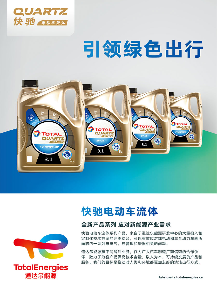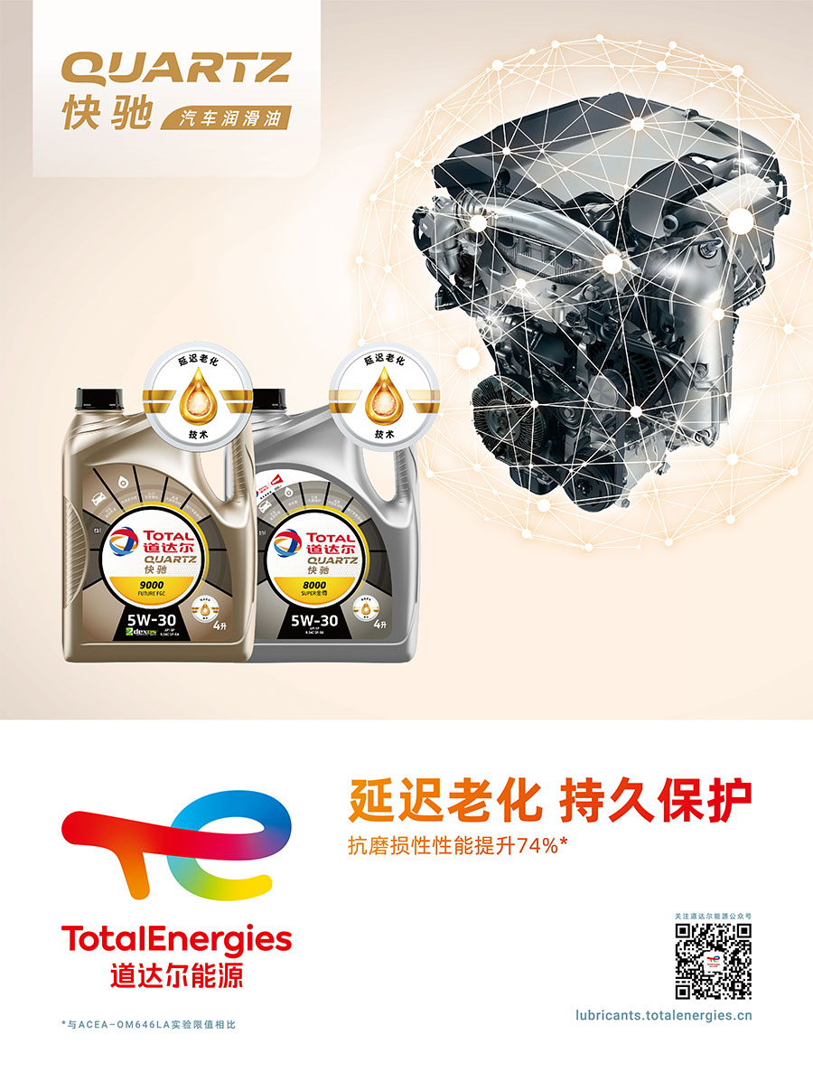 道達爾潤滑油(中國)有限公司為用戶提供全系列的高品質(zhì)車輛潤滑油液,其產(chǎn)品主要包括:汽車潤滑油(道達爾快馳系列,埃爾夫速勝PC系列)、商用車潤滑油(道達爾紅運系列,埃爾夫速勝HD系列)、摩托車潤滑油(道達爾動馳系列)、車輛齒輪油、潤滑脂以及發(fā)動機清洗油、防凍液和燃油添加劑等各種油液產(chǎn)品。同時,道達爾潤滑油(中國)有限公司在冶金、機械、石化、電力、礦業(yè)、造紙、食品等眾多工業(yè)領域,為國內(nèi)客戶提供多達上千種的工業(yè)潤滑油液,全力滿足國內(nèi)生產(chǎn)用油需求。