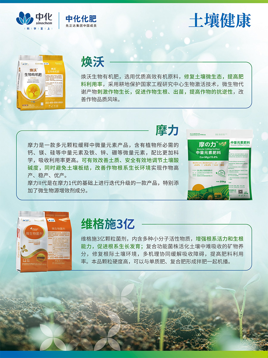 美麟美、麟葆等生物磷肥由中化化肥與中國(guó)農(nóng)業(yè)科學(xué)院聯(lián)合研發(fā),中化化肥獨(dú)家經(jīng)營(yíng),目前已升級(jí)為第三代產(chǎn)品,其“信號(hào)誘導(dǎo)促根”科技為全球獨(dú)創(chuàng),榮獲“中國(guó)增效肥料優(yōu)秀品牌“稱號(hào)藍(lán)麟是中化化肥聯(lián)合先正達(dá)研制的致力于高端經(jīng)作提質(zhì)抗逆的全水溶功能復(fù)合肥,是具有全水溶、速效性、長(zhǎng)效性、增效性的尖端科技產(chǎn)品。