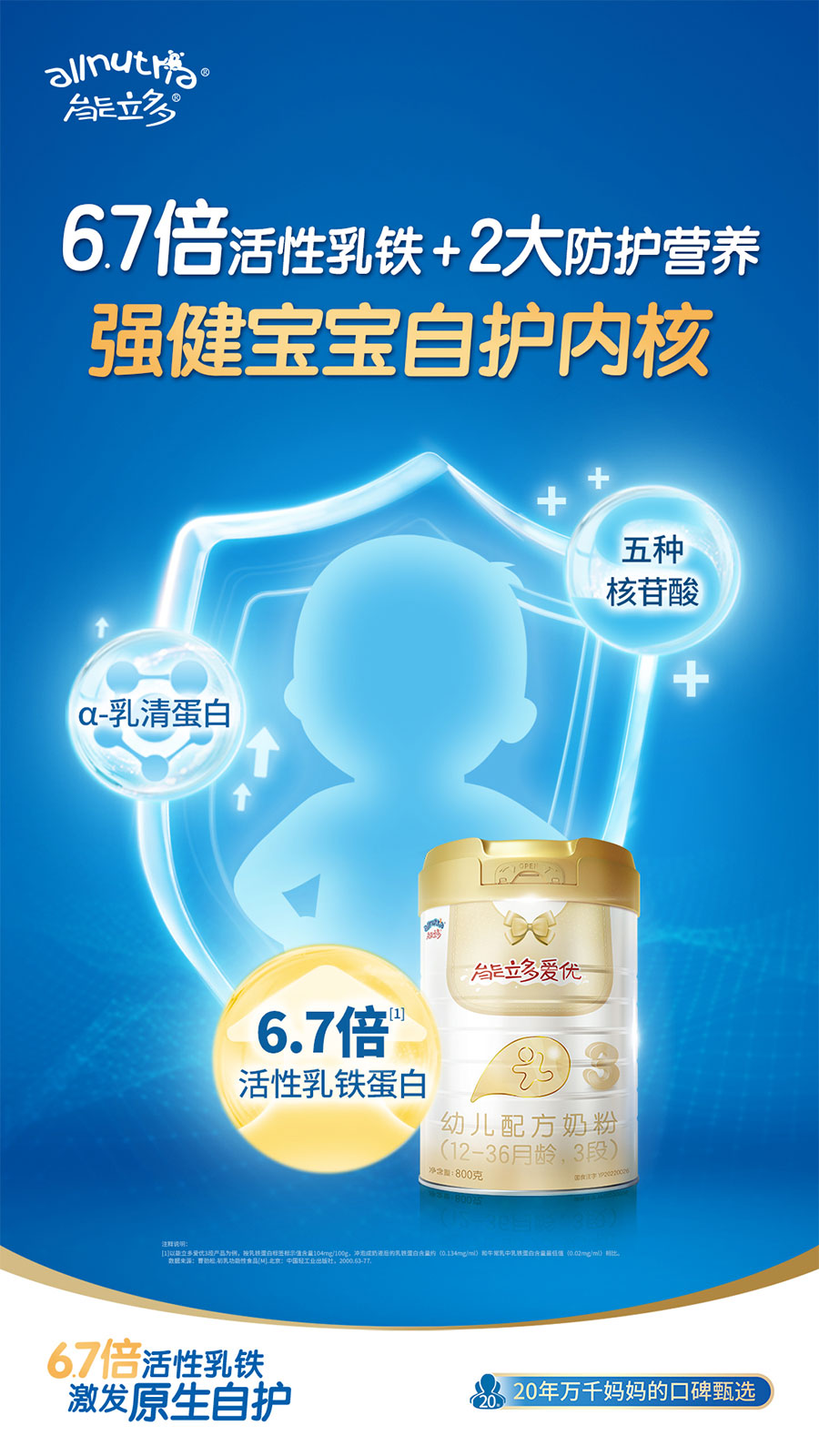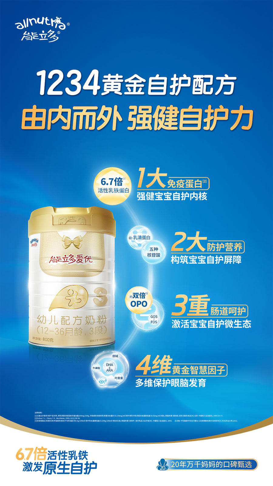澳優(yōu)以“全球營(yíng)養(yǎng) 呵護(hù)成長(zhǎng)”為企業(yè)使命,以消費(fèi)需求為中心,持續(xù)拓展產(chǎn)品矩陣,已形成覆蓋嬰配奶粉、保健食品、特醫(yī)食品、個(gè)性化營(yíng)養(yǎng)品及服務(wù)的全生命周期呵護(hù)體系,正朝著“成為全球最受信賴(lài)的配方奶粉和營(yíng)養(yǎng)健康公司”的愿景穩(wěn)步邁進(jìn)。