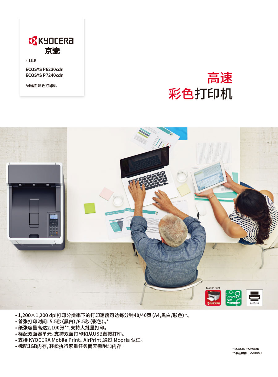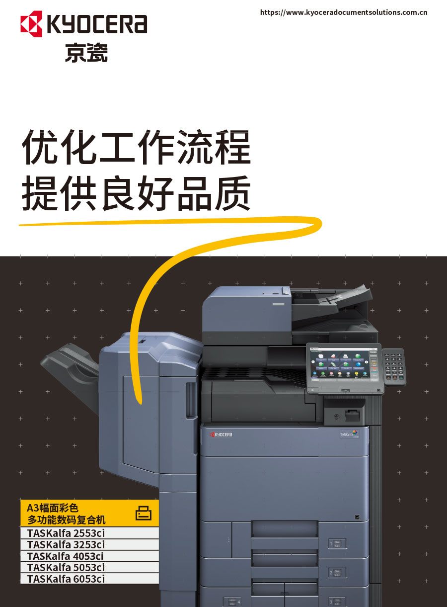京瓷株式會社由稻盛和夫先生創(chuàng)辦于1959年。“敬天愛人”社訓貫徹集團各分公司運營中。京瓷辦公信息系統(tǒng)(中國)有限公司主要負責彩色和黑白數(shù)碼復合機、彩色和黑白數(shù)碼激光打印機、生產(chǎn)型彩色噴墨數(shù)碼印刷系統(tǒng)、辦公解決方案等系列辦公自動化設備的銷售。京瓷產(chǎn)品憑借其更低的后期總體使用成本,可靠的長壽命感光鼓,獲得眾多政府、企業(yè)的青睞,在中國的市場占有率逐年穩(wěn)步提升。