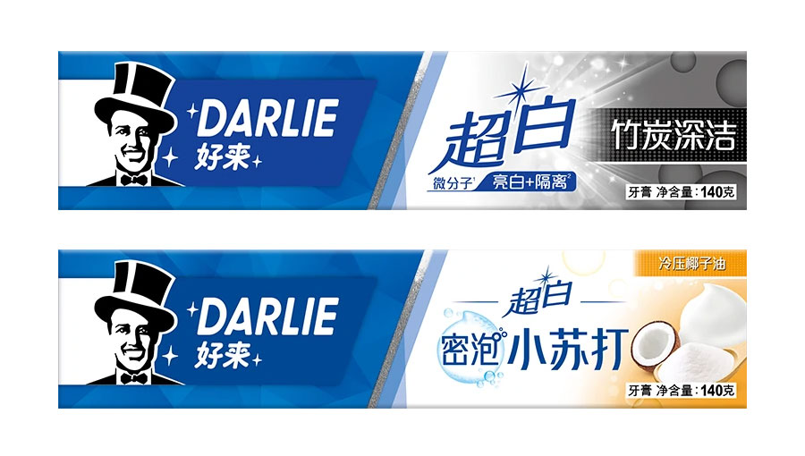目前DARLIE好來牙膏共有數(shù)十個品種、多種規(guī)格(18g-250g),其中銷往中國大陸市場包括經(jīng)典的雙重薄荷系列、茶倍健系列、超白系列、專研護齦系列、抗敏感系列、透心爽系列,兒童牙膏系列及新增了白.酵素系列和星耀白系列等20個品種,另外還有多個品種同時銷往新加坡、馬來西亞、泰國、中國香港和中國臺灣等市場。
