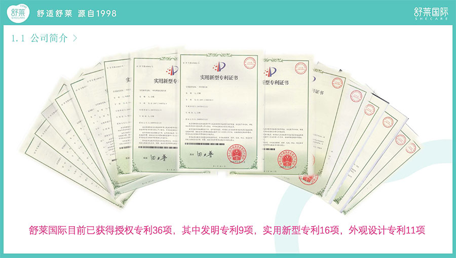 舒萊,一個(gè)女性朋友熟知的國貨品牌,26年來一直在襄城縣默默“發(fā)育”。目前舒萊公司擁有12條現(xiàn)代化全自動(dòng)生產(chǎn)線,不斷地通過產(chǎn)品研發(fā)和技術(shù)創(chuàng)新,取得了輝煌業(yè)績。截至2024年7月1日共有專利36個(gè),擁有9項(xiàng)發(fā)明專利,13項(xiàng)實(shí)用新型專利,10項(xiàng)外觀設(shè)計(jì)專利,衛(wèi)生巾年生產(chǎn)能力達(dá)66億片,被認(rèn)定為“國家級(jí)高新技術(shù)企業(yè)”“省級(jí)抗菌婦女衛(wèi)生用品工程技術(shù)研究中心”“中國女性衛(wèi)生用品行業(yè)十強(qiáng)企業(yè)”,已成為國內(nèi)衛(wèi)生巾生產(chǎn)領(lǐng)域領(lǐng)軍企業(yè)。