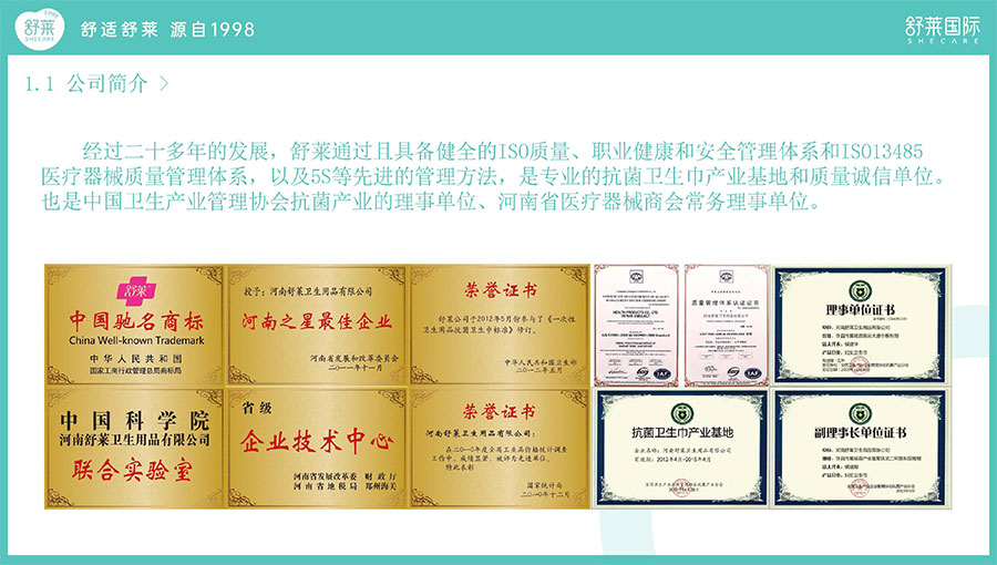主要產(chǎn)品:舒萊、凸凸棉衛(wèi)生巾、衛(wèi)生護(hù)墊、安睡褲(女性衛(wèi)生褲)
