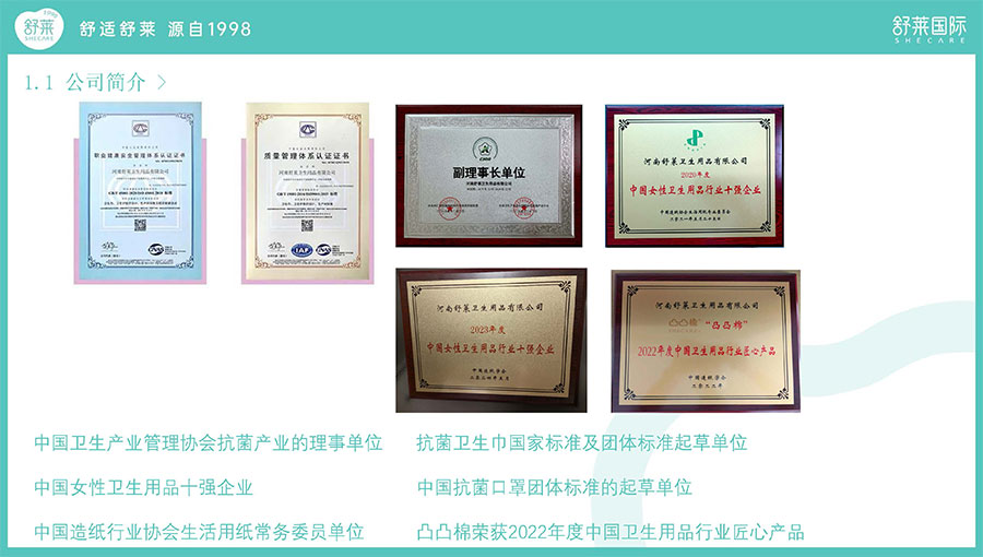 2021年5月,被中國造紙協(xié)會(huì)生活用紙專業(yè)委員會(huì)評(píng)定為“2020年度中國女性衛(wèi)生用品行業(yè)十強(qiáng)企業(yè)”;