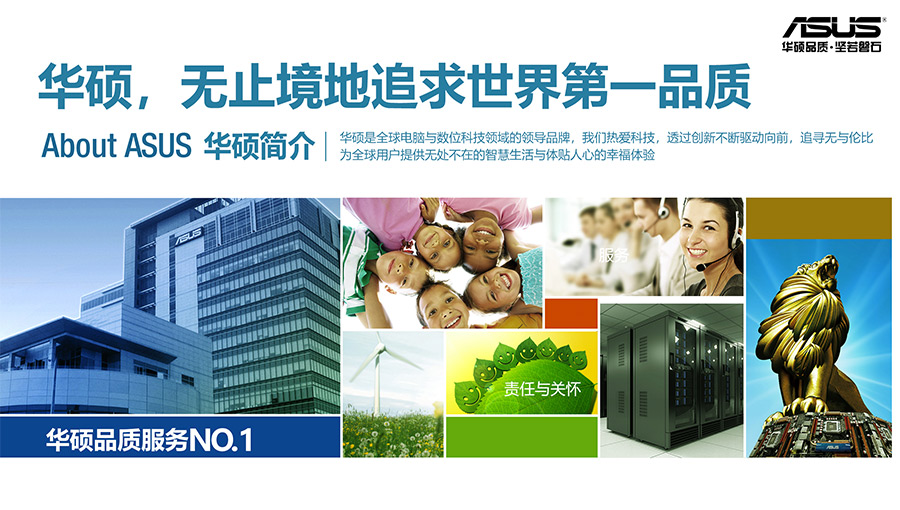 人文的華碩——華碩設(shè)計思維始于以人為本,展現(xiàn)出杰出的品質(zhì)和無與倫比的創(chuàng)新精神,堅持將每件事做到極致。成立以來,華碩人秉承謙、誠、勤、敏、勇五徳,著眼未來,通過創(chuàng)新不斷驅(qū)動向前,追求卓越勇于接受挑戰(zhàn),形成了與眾不同的企業(yè)文化。經(jīng)營理念上,堅持培育、珍惜、關(guān)懷員工,讓華碩人盡情地發(fā)揮自身潛力;堅守誠信、勤儉、崇本、務(wù)實的正道;堅持不懈追求更高的品質(zhì)、速度、服務(wù)、創(chuàng)新、成本,立志以綠色科技為人類社會環(huán)境真正做出貢獻。