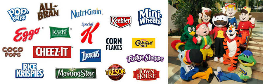 目前家樂(lè)氏公司在全球的主要品牌包括Kellogg’s、Keebler、Pop-Tarts、Eggo、Cheez-It、Club、 Nutri-Grain、Rice Krispies、Special K、All-Bran、Mini-Wheats、Morningstar Farms、Famous Amos、Ready Crust、Kashi and Pringles。