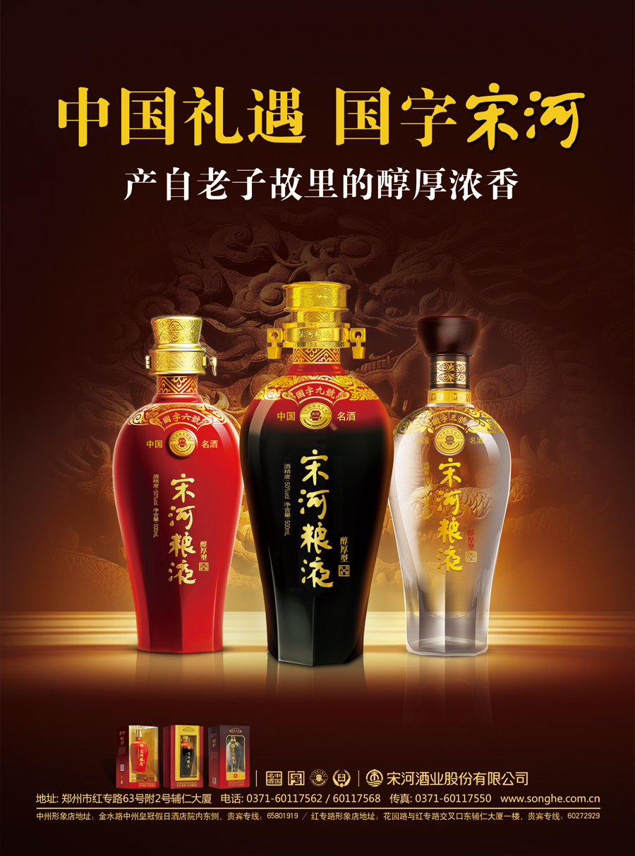 主要產(chǎn)品:國(guó)字宋河、秘藏系列、平和系列、鹿邑大曲等