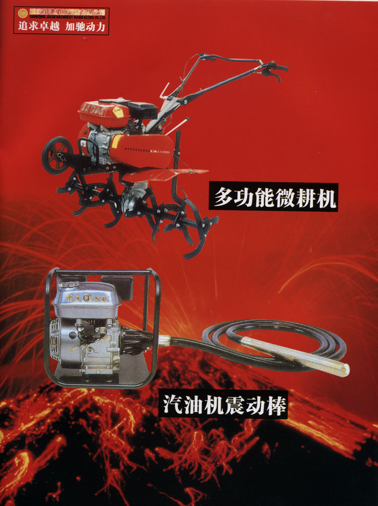 重慶加馳機械制造有限公司是一家專業(yè)從事小型農用機械、通用汽油機、汽油水泵機組、汽油發(fā)電機組、耕作機、割草機、草坪修剪機、機動脫粒機、公路切割機、摩托車發(fā)動機及零部件等的研發(fā)、制造、銷售與服務為一體的企業(yè)。公司座落于環(huán)境優(yōu)美、交通便捷的重慶市大渡口八橋工業(yè)園。