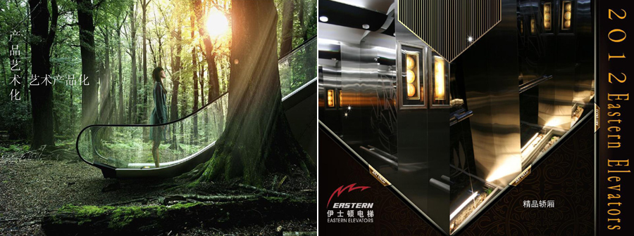 位于圖案下方的英文單詞“EASTERN”,采用黑體斜向手法繪制的,其造型穩(wěn)健、遒勁、與流線型線條渾然一體,充分表達(dá)了伊士頓電梯的品牌特征。