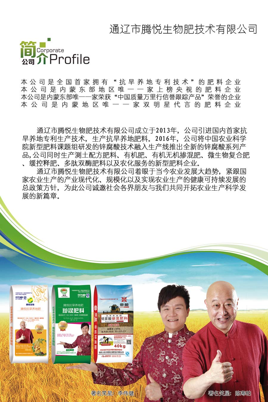 ※ 企業(yè)是內蒙地區(qū)唯一一家雙明星代言的肥料企業(yè)。