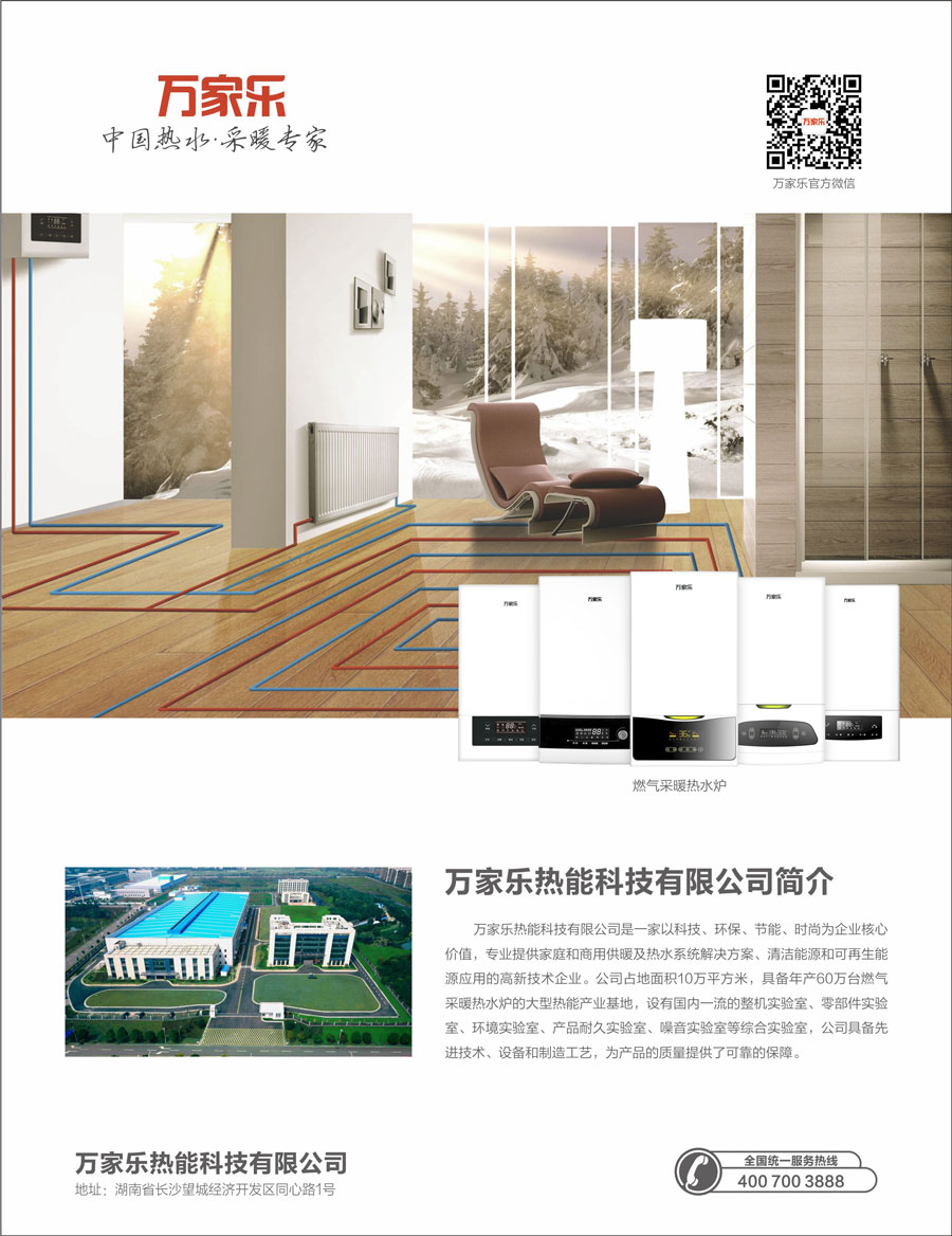 萬家樂熱能科技有限公司是一家以科技、環(huán)保、節(jié)能、時(shí)尚為企業(yè)核心價(jià)值,專業(yè)提供家庭和商用供暖及熱水系統(tǒng)解決方案、清潔能源和可再生能源應(yīng)用的高新技術(shù)企業(yè)。公司占地面積10萬平方米,具備年產(chǎn)30萬臺(tái)燃?xì)獗趻鞝t的大型熱能產(chǎn)業(yè)基地,設(shè)有國(guó)內(nèi)一流的整機(jī)實(shí)驗(yàn)室、零部件實(shí)驗(yàn)室、環(huán)境實(shí)驗(yàn)室、產(chǎn)品耐久實(shí)驗(yàn)室、噪音實(shí)驗(yàn)室五個(gè)綜合實(shí)驗(yàn)室,引進(jìn)歐美等國(guó)的先進(jìn)技術(shù)、設(shè)備和制造工藝,為產(chǎn)品的質(zhì)量提供了可靠的保障。