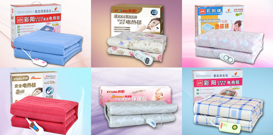 主要產(chǎn)品:彩陽(yáng)電熱毯、電熱墊