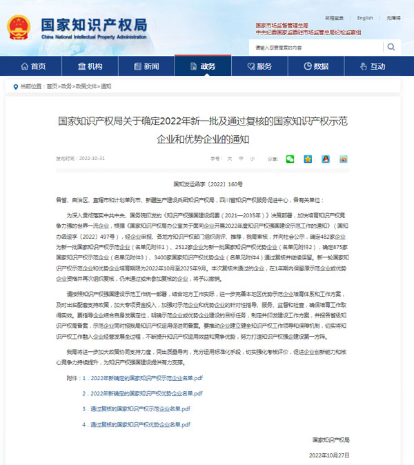 “國(guó)家知識(shí)產(chǎn)權(quán)優(yōu)勢(shì)企業(yè)”是我國(guó)知識(shí)產(chǎn)權(quán)管理領(lǐng)域的最高榮譽(yù)之一,是國(guó)家對(duì)企業(yè)在知識(shí)產(chǎn)權(quán)的創(chuàng)造、運(yùn)用、保護(hù)、管理等方面的突出工作所作出的高度評(píng)價(jià)。入選企業(yè)都是擁有自主知識(shí)產(chǎn)權(quán)和知名品牌、具備行業(yè)競(jìng)爭(zhēng)優(yōu)勢(shì)的技術(shù)領(lǐng)先企業(yè)。