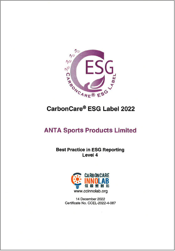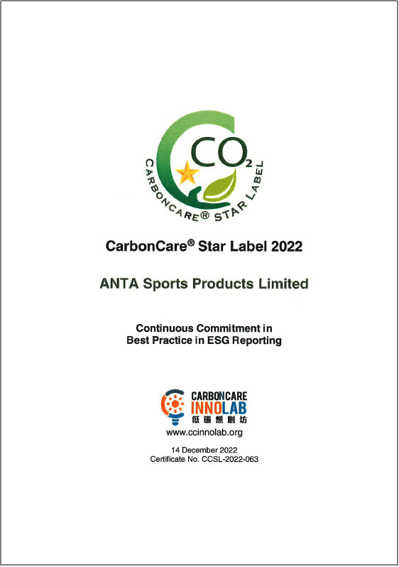 此外,安踏集團(tuán)于低碳想創(chuàng)坊(Carbon Care Innovation Lab)中獲頒「ESG報告最佳匯報實(shí)踐第四級」,較去年提升兩級,反映集團(tuán)ESG報告表現(xiàn)優(yōu)異,在公司董事局的問責(zé)度、實(shí)質(zhì)性評估、社會關(guān)鍵績效指標(biāo)的披露,以及企業(yè)氣候行動的努力亦得到外界的認(rèn)可。安踏集團(tuán)曾于過往連續(xù)三年成功取得「低碳關(guān)懷標(biāo)簽」,因此本年度獲額外頒發(fā)「低碳關(guān)懷星級標(biāo)簽」,以表彰過往在ESG方面的成果。