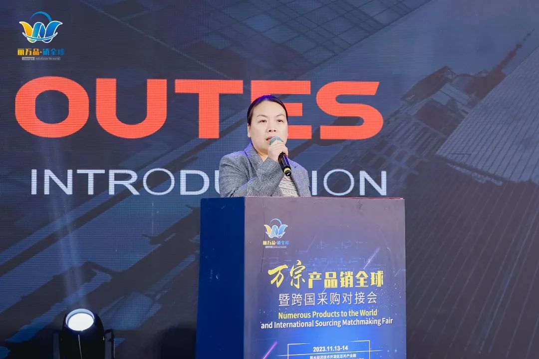 與此同時,中廣電器集團海外營銷中心負責人劉麗萍作為麗水經(jīng)開區(qū)企業(yè)代表,在對接會開幕式上作相關主題分享。她圍繞集團介紹、主營業(yè)務、產(chǎn)品研發(fā)等多方面內容,向來自世界各地的采購商進行全方位的企業(yè)推介。