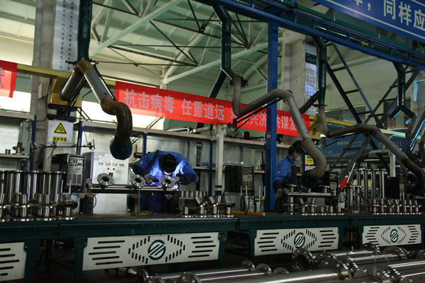 為確保雷神山醫(yī)院在2月5日完成交付,50多名尚在假期中的工人火速集結(jié),連夜開始了這場“閃擊戰(zhàn)”。公司其他訂單全為這套供水設(shè)備讓路,各道工序上投入的都是經(jīng)驗豐富的精兵強(qiáng)將,12個車間機(jī)器轟鳴,馬力全開。公司高管不斷協(xié)調(diào)進(jìn)度,全體工人徹夜不休,終于在2月2日17時完成了設(shè)備的組裝。再經(jīng)過仔細(xì)調(diào)試,確保萬無一失之后,青島三利集團(tuán)將這套價值180余萬元的設(shè)備星夜發(fā)往武漢。