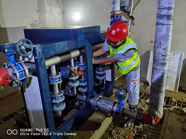 在武漢的安裝人員現(xiàn)場隨時待命,公司的技術(shù)負(fù)責(zé)人隨時指導(dǎo),在2月4日凌晨3時25分完成現(xiàn)場安裝調(diào)試,投入正常通水運(yùn)行。