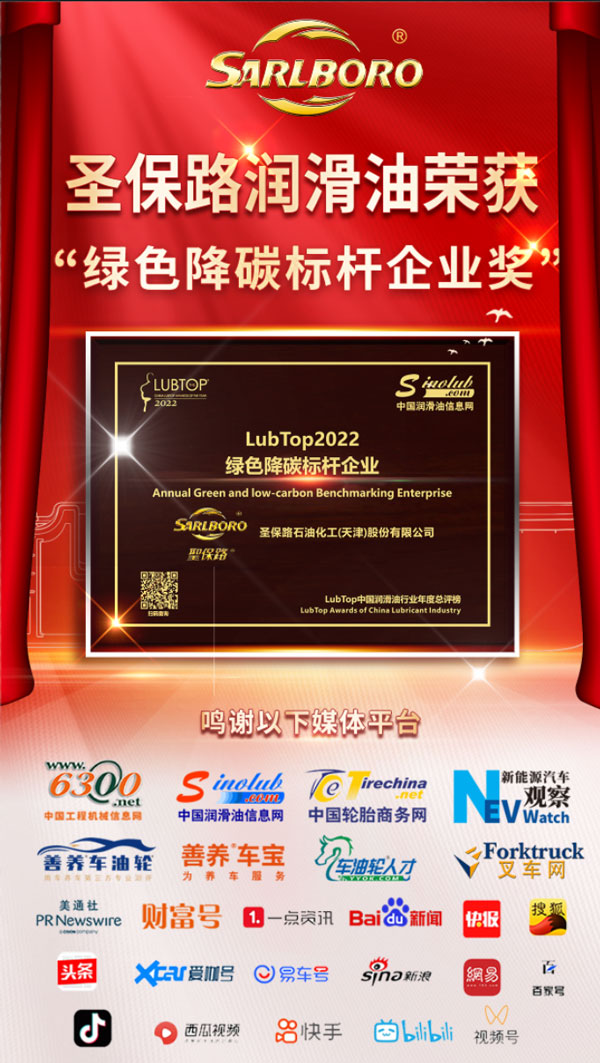今日,被業(yè)界廣泛認(rèn)為是由國(guó)際巨頭領(lǐng)銜、中國(guó)知名自主品牌共同參與并實(shí)現(xiàn)跨界融合的潤(rùn)滑油行業(yè)“年度奧斯卡”——LubTop2022中國(guó)潤(rùn)滑油行業(yè)年度總評(píng)榜全球開(kāi)啟。圣保路憑借“節(jié)能降碳 綠色先行”發(fā)展戰(zhàn)略下的踐行成果獲得業(yè)界肯定,摘得“綠色降碳標(biāo)桿企業(yè)”大獎(jiǎng)。