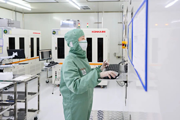 2022年9月30日,重慶康佳半導體光電產業(yè)園生產車間內,數(shù)條Micro LED、Mini LED產線同時運轉,工人們緊張有序地忙碌著,呈現(xiàn)出一派熱火朝天的景象。