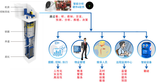 愛登堡人工智能綠色曳引驅(qū)動(dòng)乘客電梯通過搭載先進(jìn)傳感器、控制器、執(zhí)行器等裝置,結(jié)合信息通信、互聯(lián)網(wǎng)、大數(shù)據(jù)、云計(jì)算、傳感檢測等新技術(shù),具備與人類智能(視覺、聽覺、感知、決策、交互、語言、執(zhí)行)相關(guān)的功能。