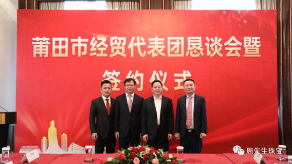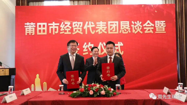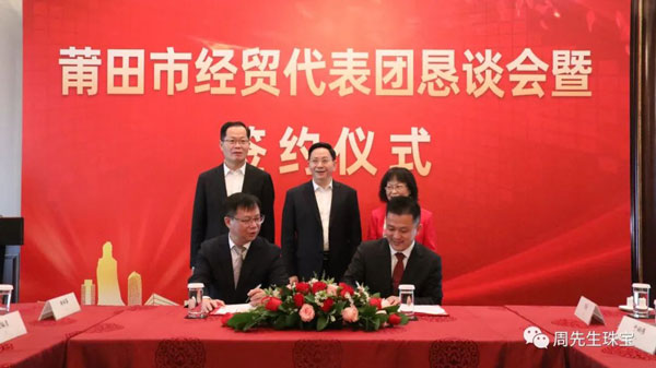 懇談會(huì)期間,莆田經(jīng)貿(mào)代表團(tuán)與眾多莆仙籍企業(yè)家面對面交流,就共同推進(jìn)項(xiàng)目合作達(dá)成諸多意向,舉行了簽約儀式。香港周先生珠寶金行國際集團(tuán)有限公司作為應(yīng)邀出席的企業(yè)之一,在眾多領(lǐng)導(dǎo)的見證下簽署“香港周先生珠寶金行國際集團(tuán)有限公司供應(yīng)鏈平臺(tái)”項(xiàng)目合作協(xié)議 。