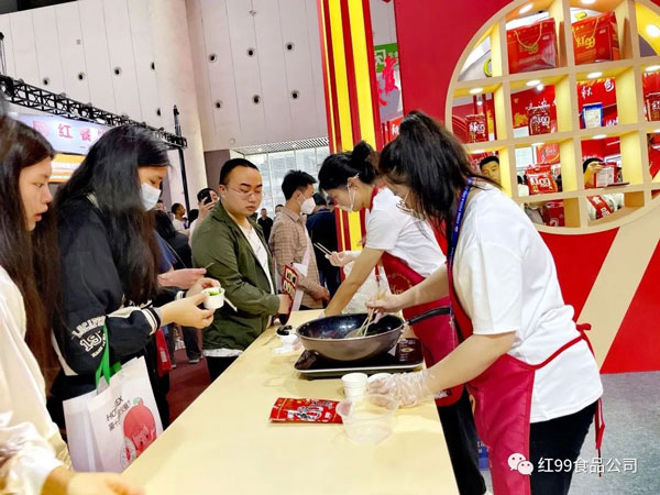 在紅九九品牌服務(wù)商-重慶貓頭鷹科技公司展區(qū),工作人員現(xiàn)場(chǎng)展示并詳細(xì)說(shuō)明具體操作流程,只需兩步就能享用地道重慶火鍋。省時(shí)、省事、省心、方便、快捷是它的優(yōu)點(diǎn);同時(shí),紅99牌濃縮火鍋底料更是眾多家庭、餐廳、火鍋餐館、酒店選擇的方便型調(diào)味料,也是饋贈(zèng)親友之佳品。希望可以將這份美味分享給全國(guó)乃至全世界的朋友們,即使在他鄉(xiāng)也能吃到正宗的重慶火鍋。
