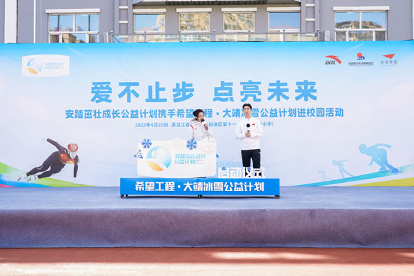 2023年4月20日,安踏茁壯成長公益計劃攜手希望工程·大靖冰雪公益計劃進(jìn)校園啟動儀式,在黑龍江省佳木斯市前進(jìn)區(qū)第十一小學(xué)(下簡稱十一小學(xué))舉行。通過體教融合,深耕青少年體育公益,發(fā)展冰雪運動,為青少年茁壯成長賦能。安踏集團為十一小學(xué)全體師生捐贈了安踏裝備包,捐建了武大靖-安踏夢想中心,體育教師接受了安踏體育課教師培訓(xùn)。短道速滑奧運冠軍武大靖重返兒時母校,分享冠軍故事,首次推出大靖冰雪課。安踏集團執(zhí)行董事、聯(lián)席CEO吳永華,安踏集團副總裁李玲,共青團黑龍江省委書記徐長勇,黑龍江省佳木斯市委副書記、代市長王鐵,上海真愛夢想公益基金會理事長潘江雪,共同出席活動,央視頻進(jìn)行了全程直播。