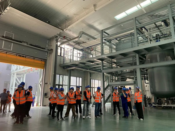 在李艷國董事長、生產(chǎn)部經(jīng)理王建成等領導的陪同下,商學院觀摩團先后參觀了新廠的基礎油儲罐區(qū)、實驗中心、潤滑油調(diào)和設備及灌裝生產(chǎn)線、潤滑脂調(diào)和設備、金屬加工油液/防凍液/尿素溶液的生產(chǎn)工藝及設備。
