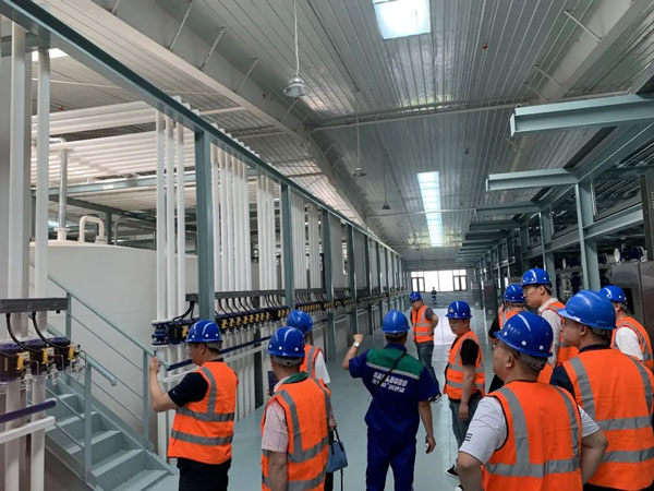 觀摩團嘉賓行至B車間參觀尿素溶液灌裝線及智能貨架