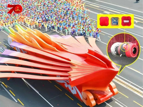 國慶七十周年慶典,群眾游行彩車配置明文利發(fā)®機(jī)動車排氣火花熄滅器