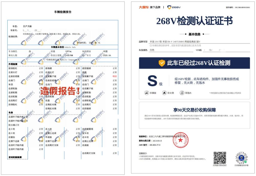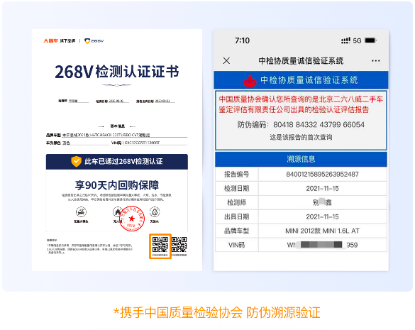 首先,268V官方提供的檢測報告,是支持“防偽溯源查詢”,每份報告均可驗證真?zhèn)?。消費者在買車時,如果檢測報告是268V的,直接掃描防偽查詢二維碼,對報告進行驗證,假報告第一時間不攻自破;
