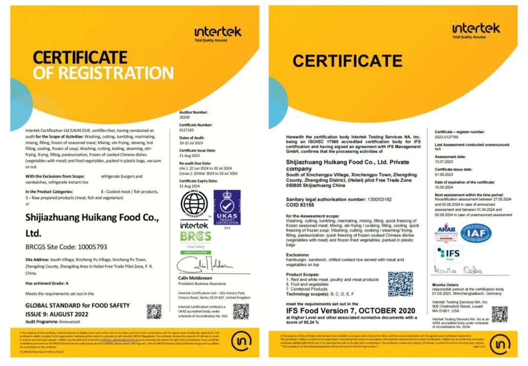 2023年8月,石家莊市惠康食品有限公司再次通過(guò)了歐洲BRC和IFS雙認(rèn)證年審。又一次驗(yàn)證了惠康食品一直以來(lái)對(duì)食品安全和質(zhì)量的高標(biāo)準(zhǔn)、嚴(yán)要求,不僅說(shuō)明了惠康食品擁有比肩一線國(guó)際大牌同等的實(shí)力,還說(shuō)明了其品質(zhì)安全也一直保持著國(guó)際水準(zhǔn),能給予消費(fèi)者足夠的安全感。