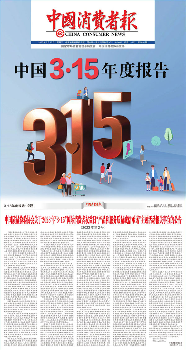 中國質(zhì)量檢驗協(xié)會關(guān)于2023年“3·15”國際消費者權(quán)益日