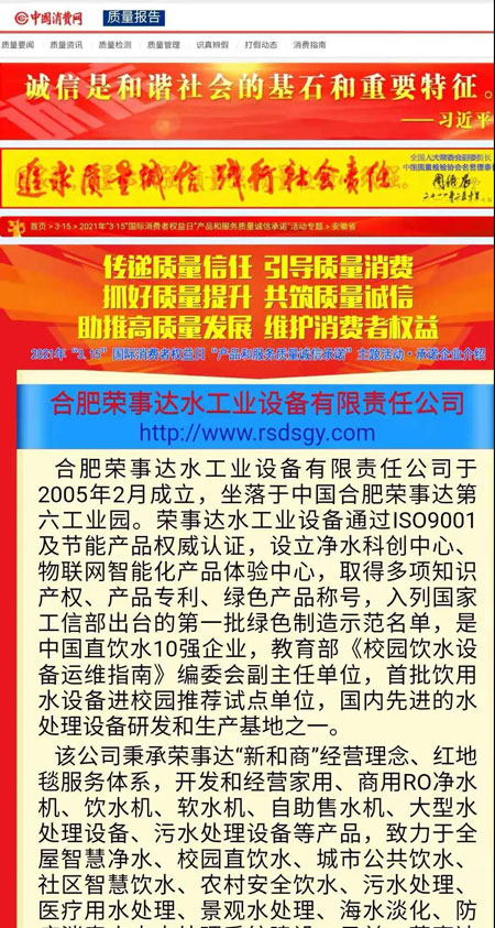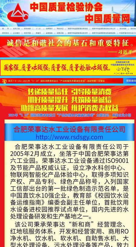 共筑質(zhì)量誠(chéng)信,引導(dǎo)質(zhì)量消費(fèi)。在由中國(guó)質(zhì)量檢驗(yàn)協(xié)會(huì)主辦的2021年“3.15”國(guó)際消費(fèi)者權(quán)益日“產(chǎn)品和服務(wù)質(zhì)量誠(chéng)信承諾”主題活動(dòng)中,榮事達(dá)憑借卓越的產(chǎn)品品質(zhì)及良好的社會(huì)形象,榮膺“全國(guó)產(chǎn)品和服務(wù)質(zhì)量誠(chéng)信示范企業(yè)”“全國(guó)質(zhì)量信得過(guò)產(chǎn)品”“全國(guó)凈水行業(yè)質(zhì)量領(lǐng)先品牌”“全國(guó)質(zhì)量誠(chéng)信先進(jìn)企業(yè)”多項(xiàng)榮譽(yù),《中國(guó)質(zhì)量報(bào)》、《中國(guó)消費(fèi)者報(bào)》及中國(guó)質(zhì)量網(wǎng)、中國(guó)經(jīng)濟(jì)網(wǎng)、中國(guó)消費(fèi)網(wǎng)等多家媒體均予以集中展示和公告。