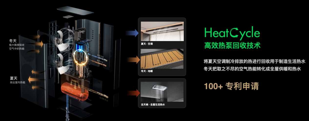 歐瑞博自研的 HeatCycle™ 高效熱泵回收存儲技術,創(chuàng)造性地將空調制冷排出去的熱回收并用于制造生活熱水,大幅提高能量利用率,綜合能效比高達5.6,遠超國標一級能耗標準。同時,MixStation 搭載了歐瑞博智能中控屏 MixPadAir 和智能系統(tǒng) HomeAI 5.0,除了更好的屏幕UI和大模型智能語音交互,在大模型AI與新能源技術加持下,主動智能,節(jié)能增效等方面均有重大行業(yè)性突破。