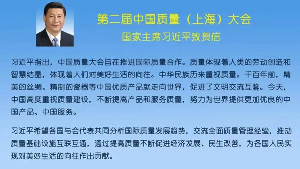 金秋時節(jié)的黃浦江邊,中國質(zhì)量(上海)大會如約而至。國家主席習(xí)近平給大會發(fā)來賀信,對大會的召開表示熱烈的祝賀。