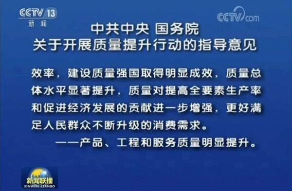 2017年9月5日,我國質(zhì)量發(fā)展史上首個以黨中央、國務(wù)院名義出臺的質(zhì)量工作綱領(lǐng)性文件——《中共中央國務(wù)院關(guān)于開展質(zhì)量提升行動的指導(dǎo)意見》。