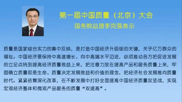 首次舉辦中國質(zhì)量(北京)大會。從2014年開始,我國持續(xù)以國家名義召開質(zhì)量大會,開創(chuàng)了中國質(zhì)量發(fā)展的新歷史。