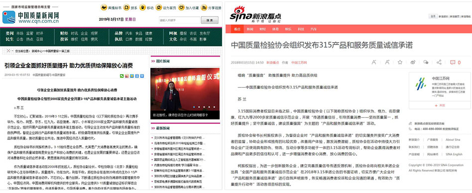 •新浪看點《中國質(zhì)量檢驗協(xié)會組織發(fā)布315產(chǎn)品和服務質(zhì)量誠信承諾》