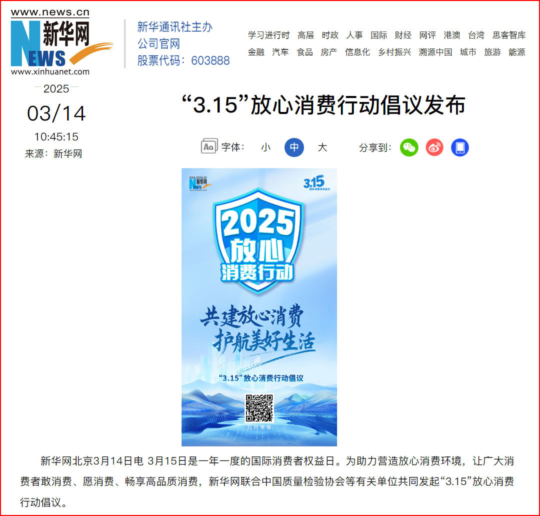 搜狐網(wǎng)報(bào)道:“3.15”放心消費(fèi)行動(dòng)倡議啟動(dòng),助力消費(fèi)環(huán)境改善
